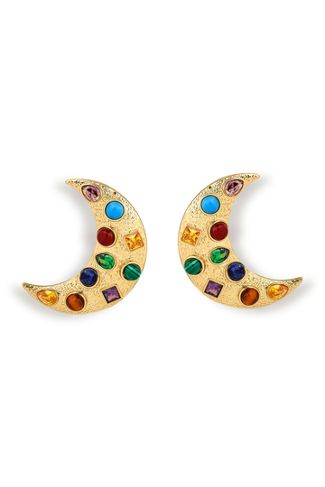 Ninon Selene Turkuaz Akik Malahit Lapis Kaplangözü ve Renkli Zirkon İşlemeli Hilal Küpe