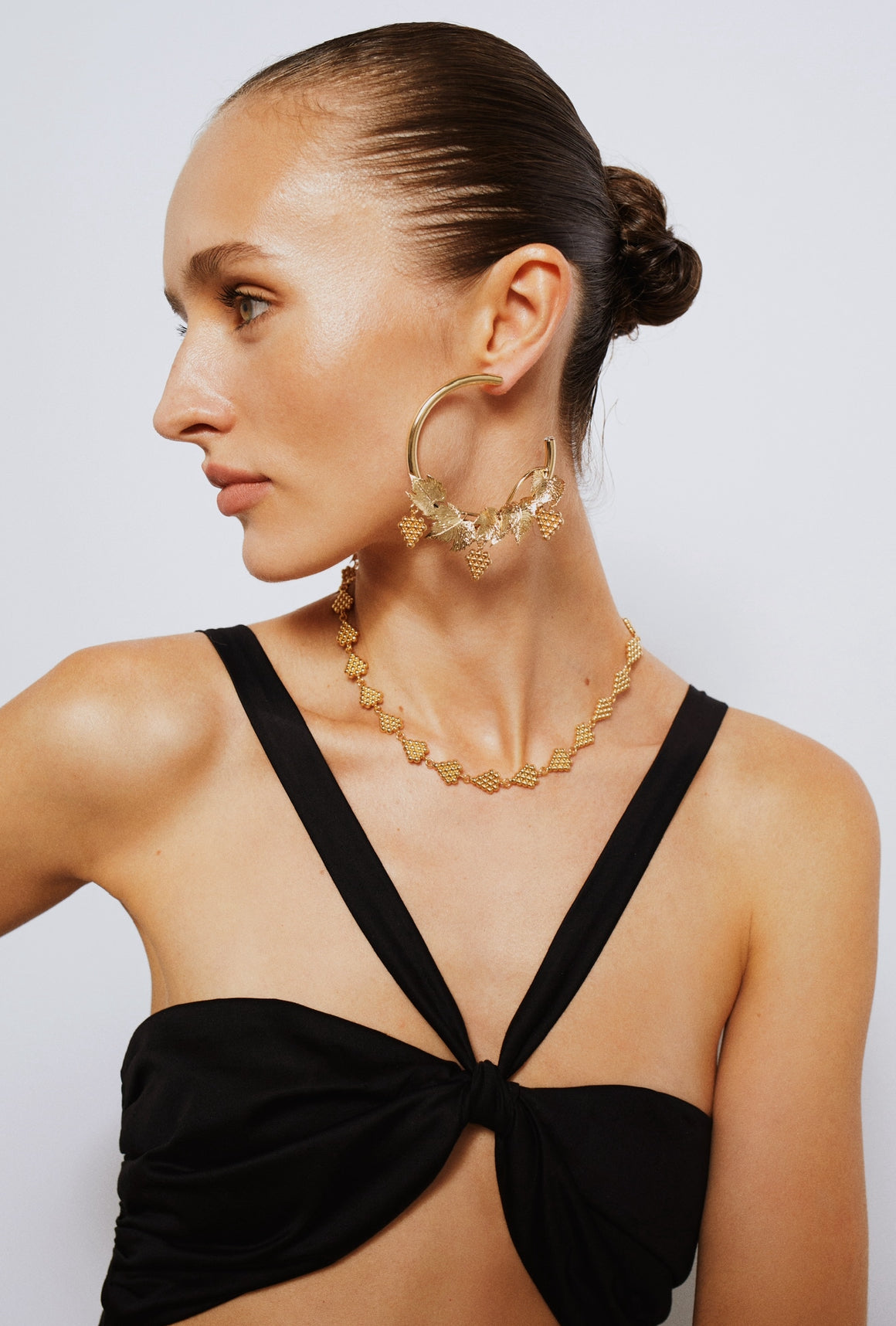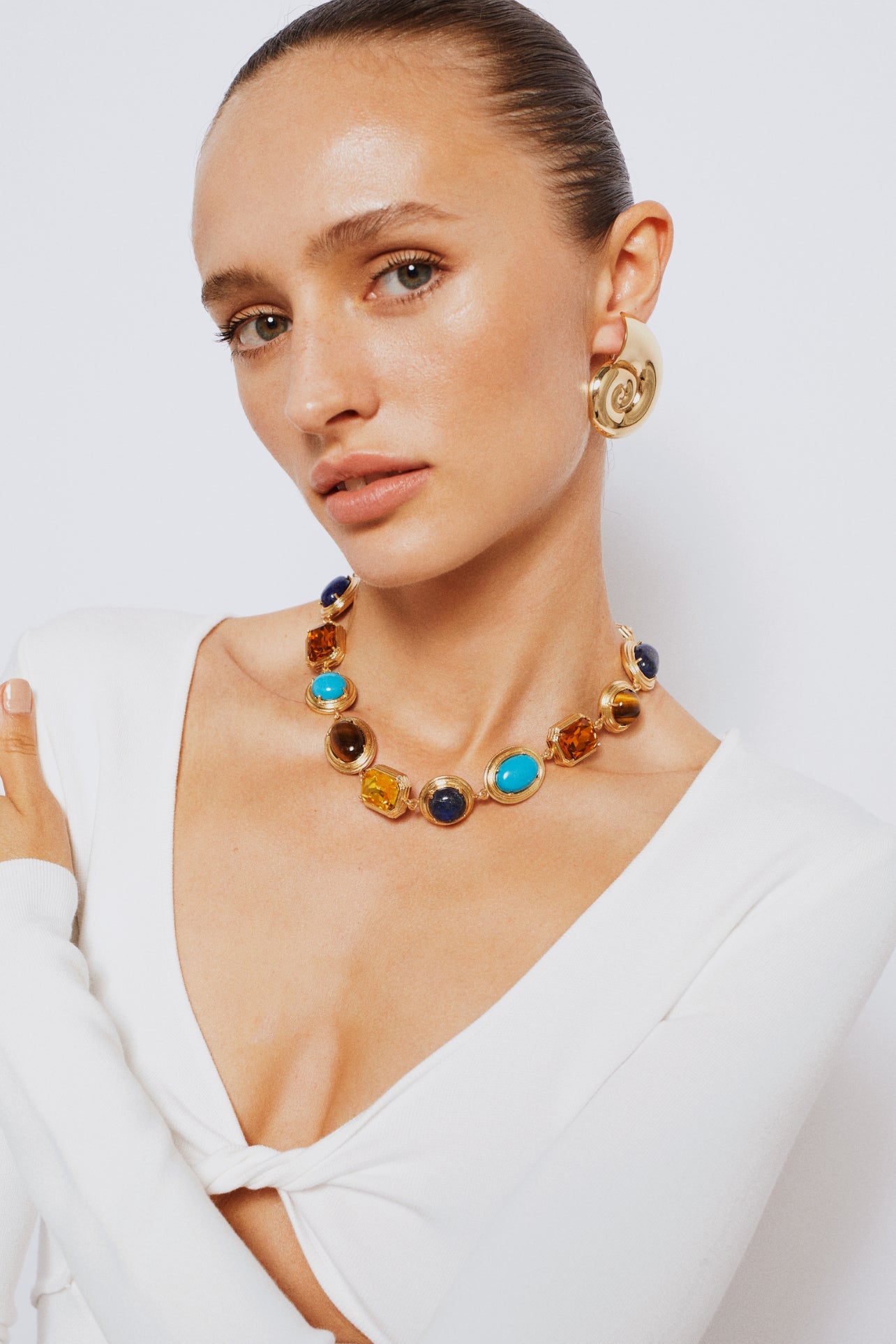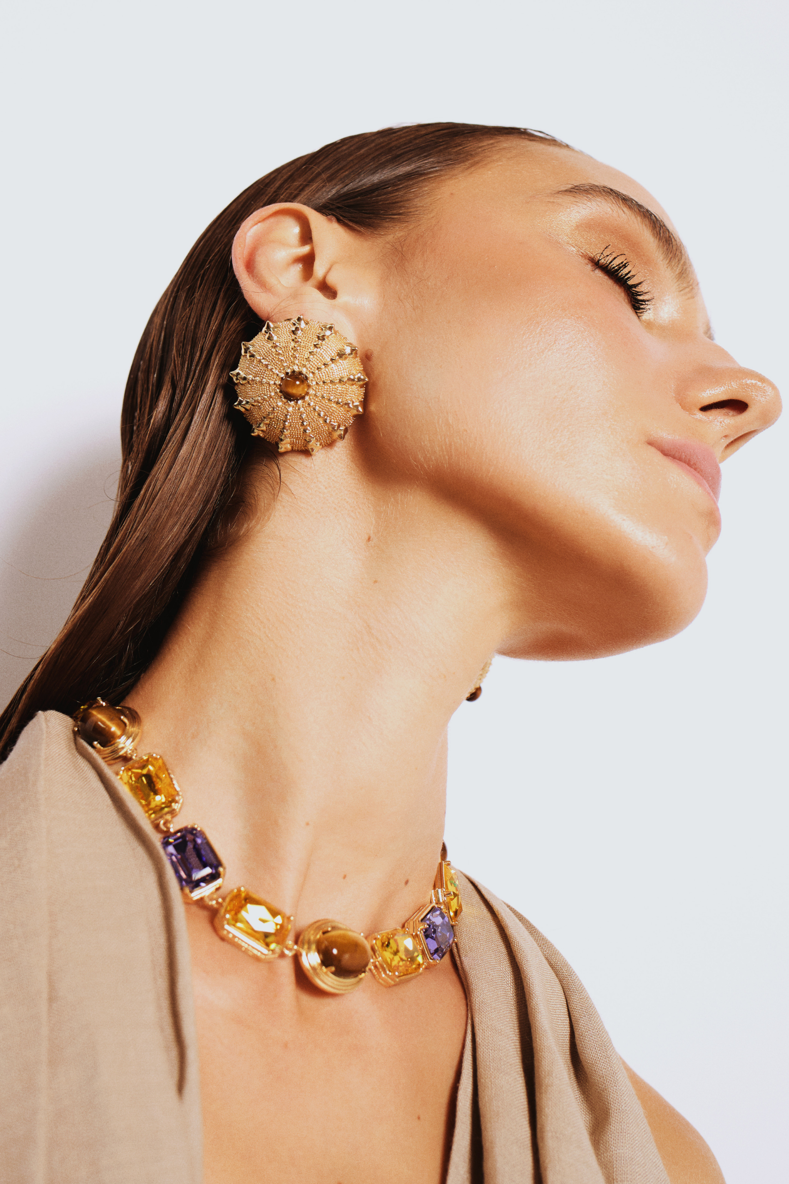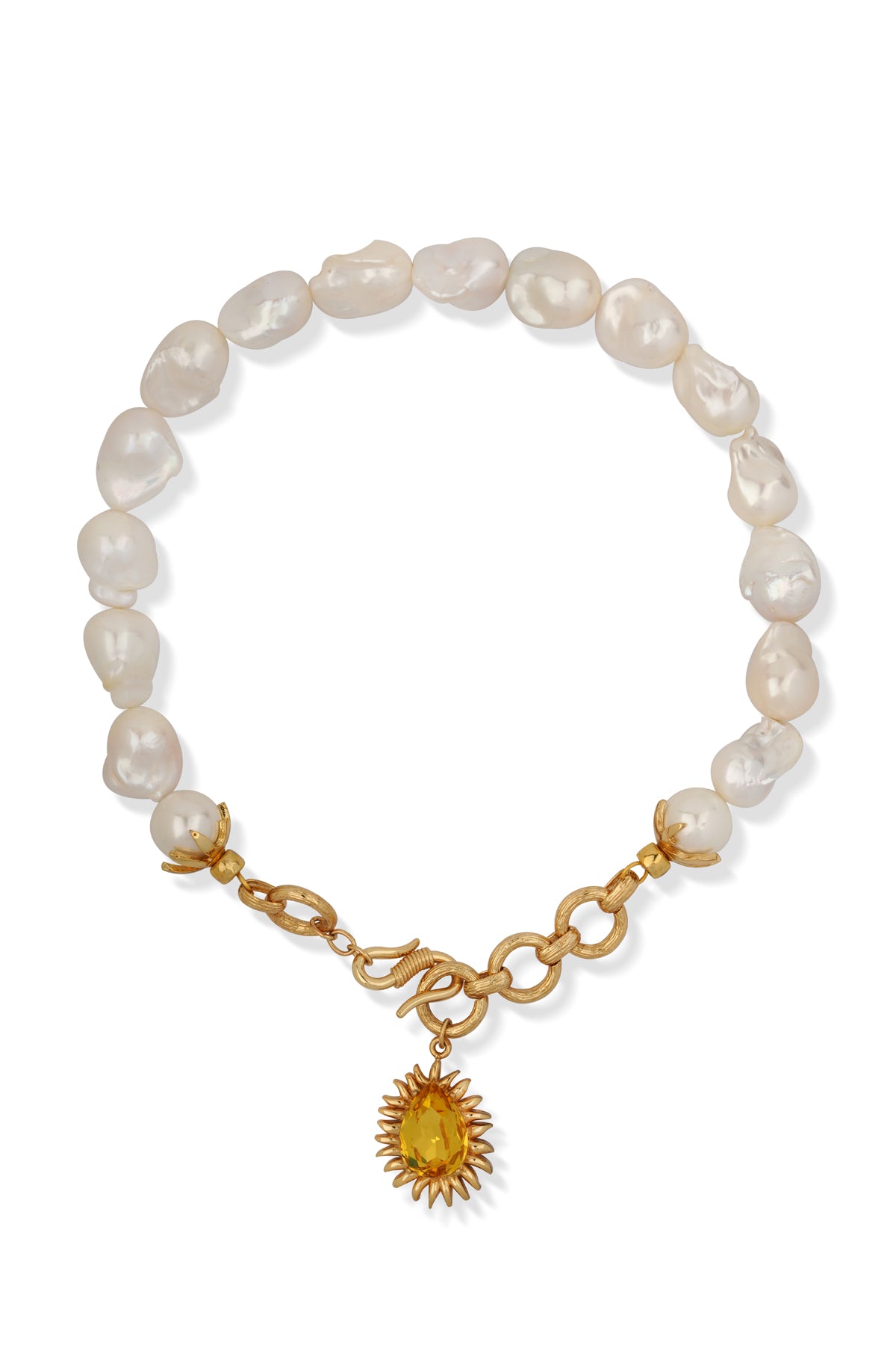 Ninon Sun Sarı Kristal Charm Deri Kolye