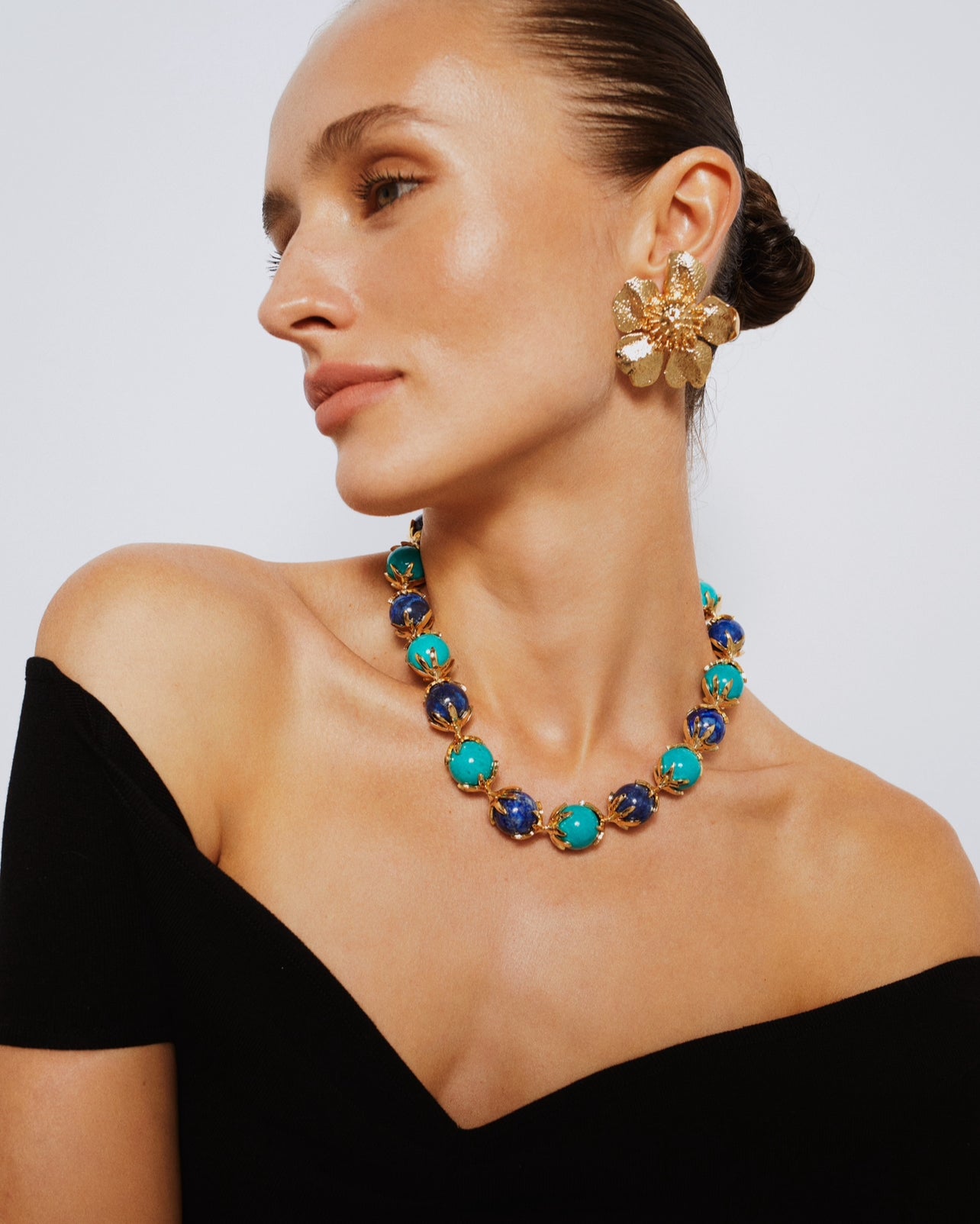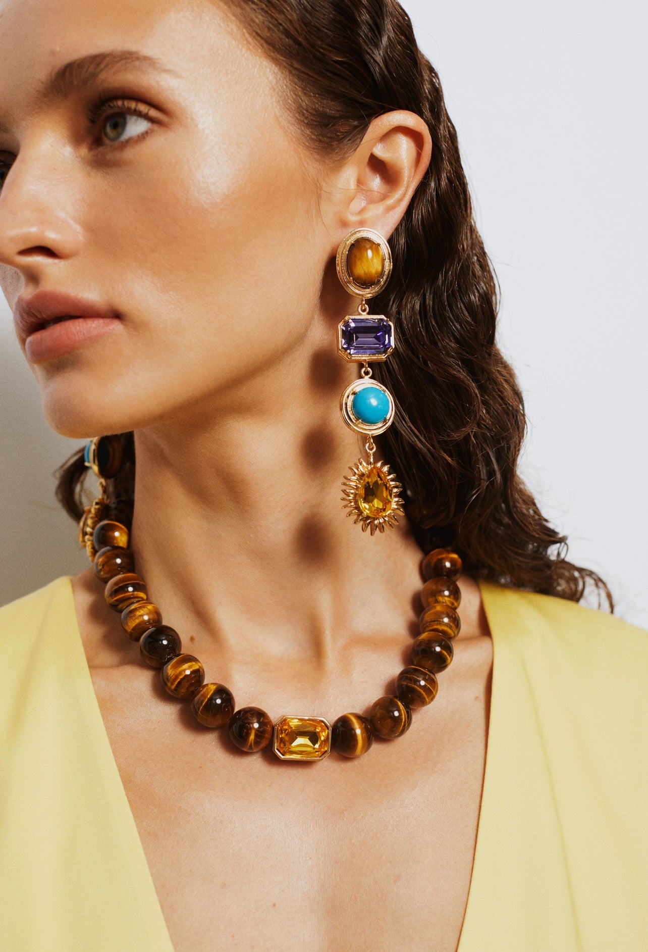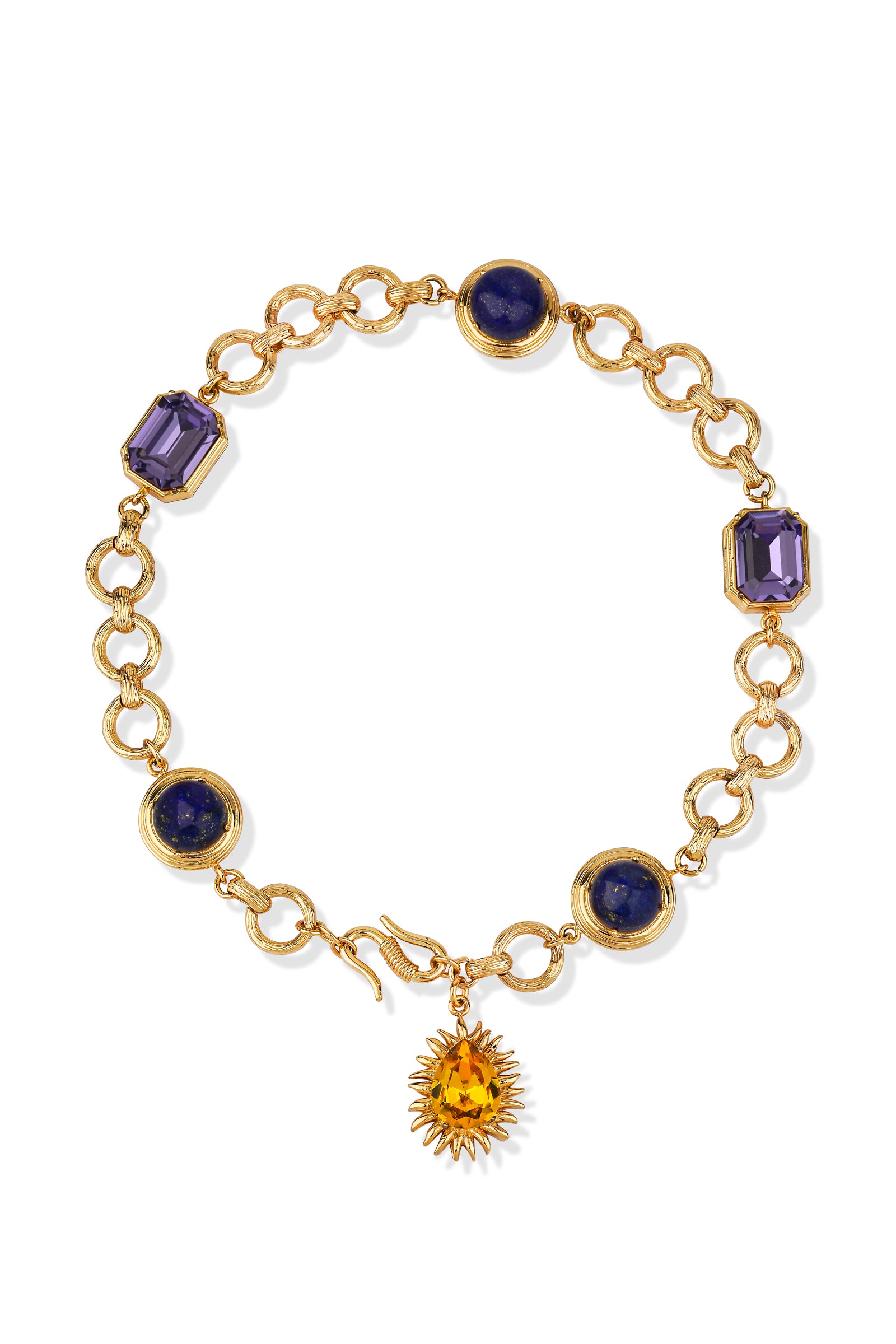 Halicarnassus Lapis ve Mor Kristal Zincir Kolye