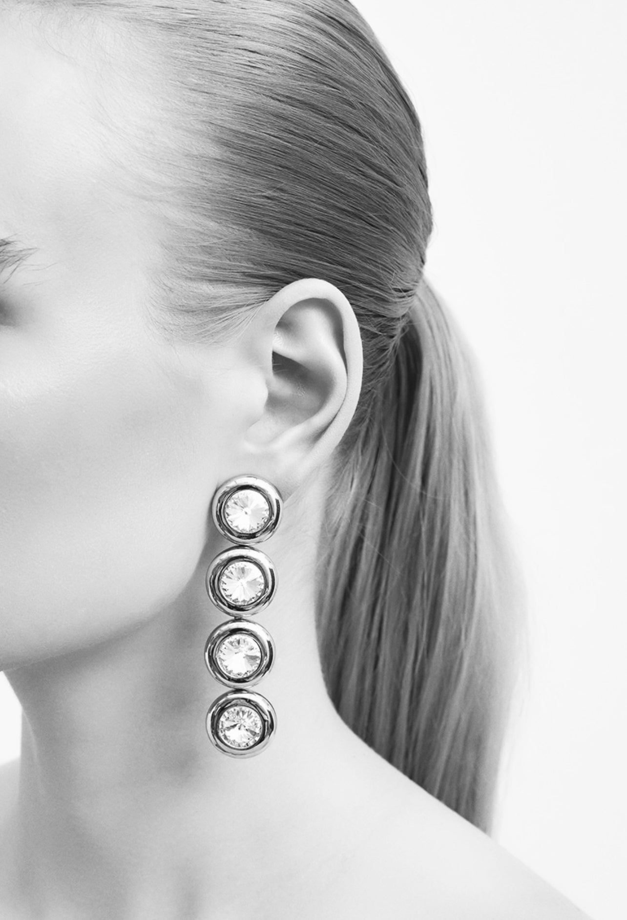 Ninon Dome Diamond Kristal Rodyum Kaplama Uzun Küpe