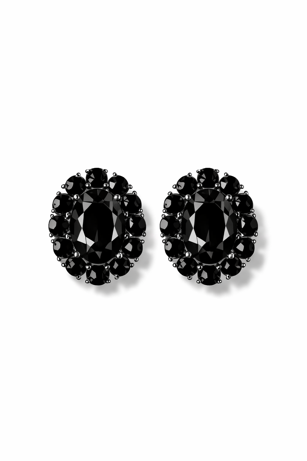 Ninon Oval Siyah Kristal Gümüş Küpe