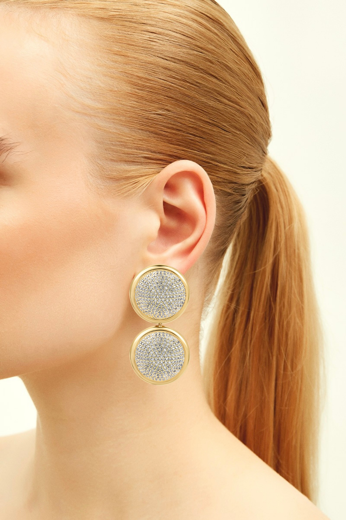 Ninon Cosmopolitan Duo Zirkon İşlemeli Altın Kaplama Küpe