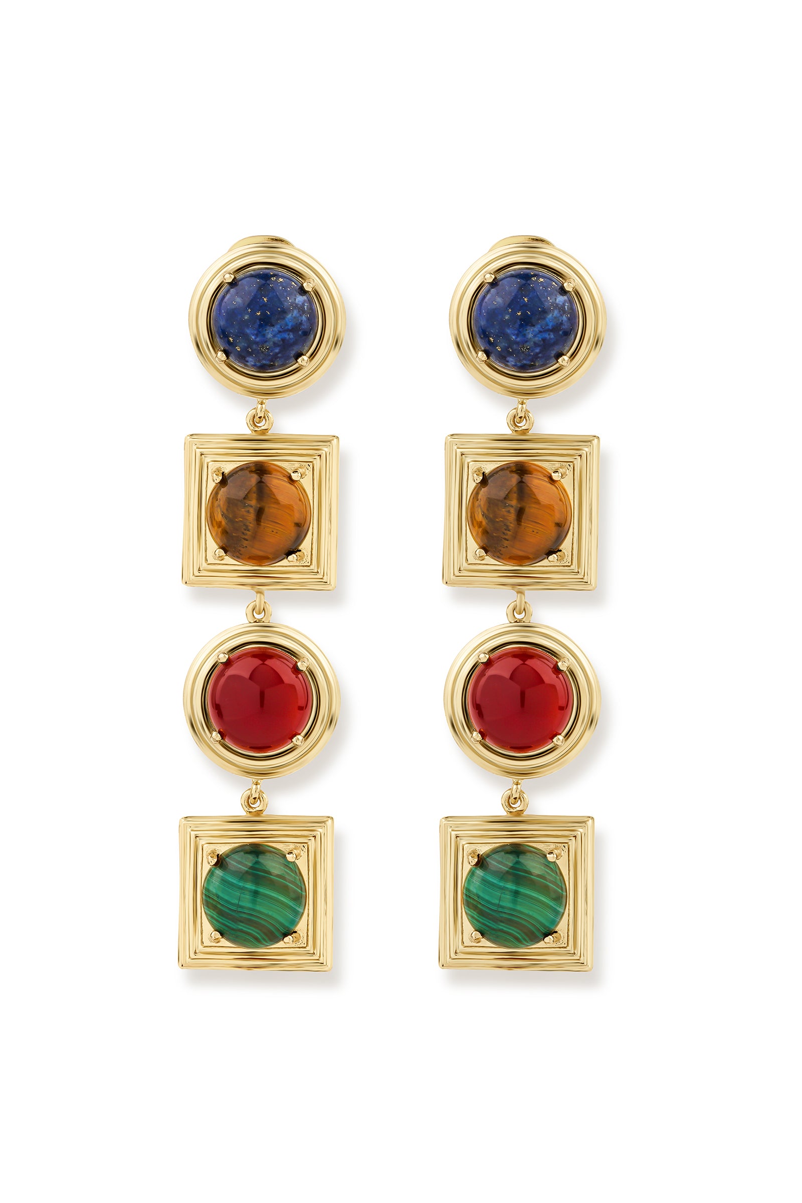 Lykia Lapis Tigereye Carnelian Malachite Long Earrings