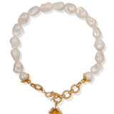 Ninon Helios Barok İnci ve Sarı Kristal Ninon Sun Sallantılı Zincirli Kolye