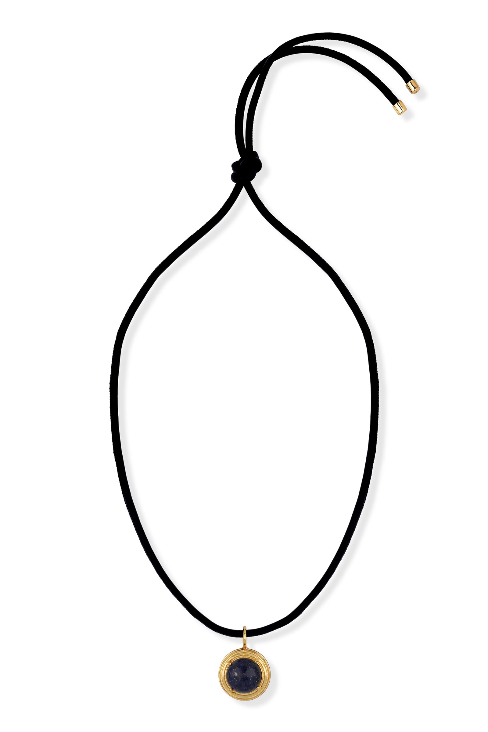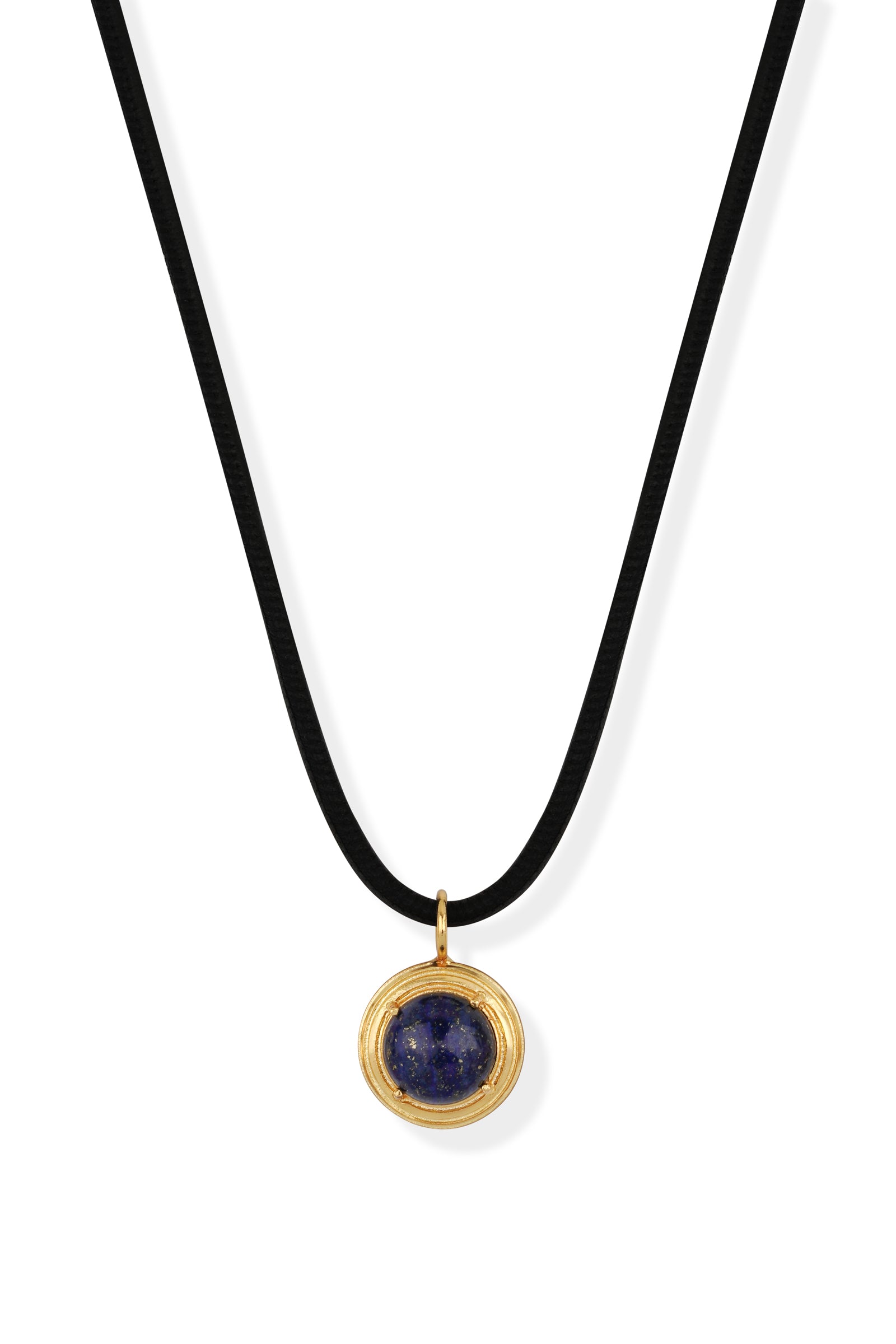 Ninon Halicarnassus Lapis Yuvarlak Charm Siyah Deri Kolye