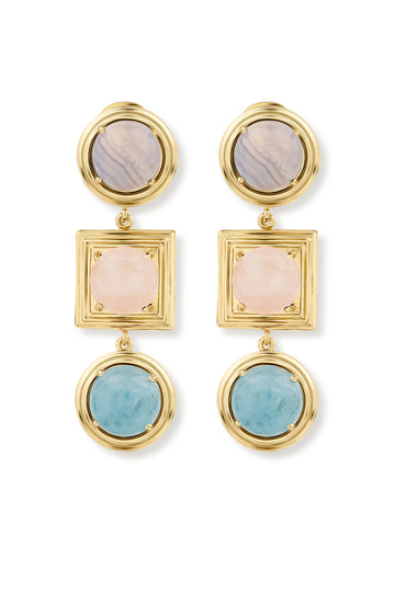 Lykia Blue Lace Agate Pink Quartz Aquamarine Earrings