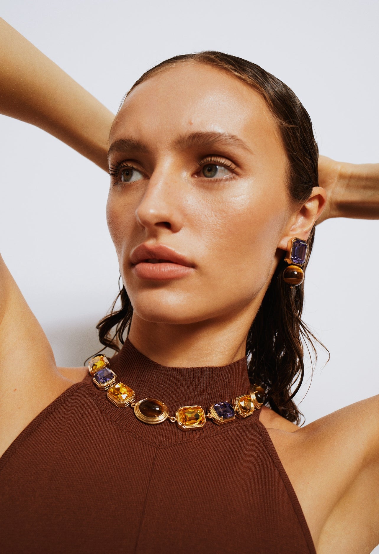 Ninon Myndos Kaplangözü Sarı Mor Kristal Kolye