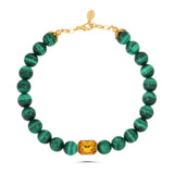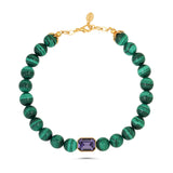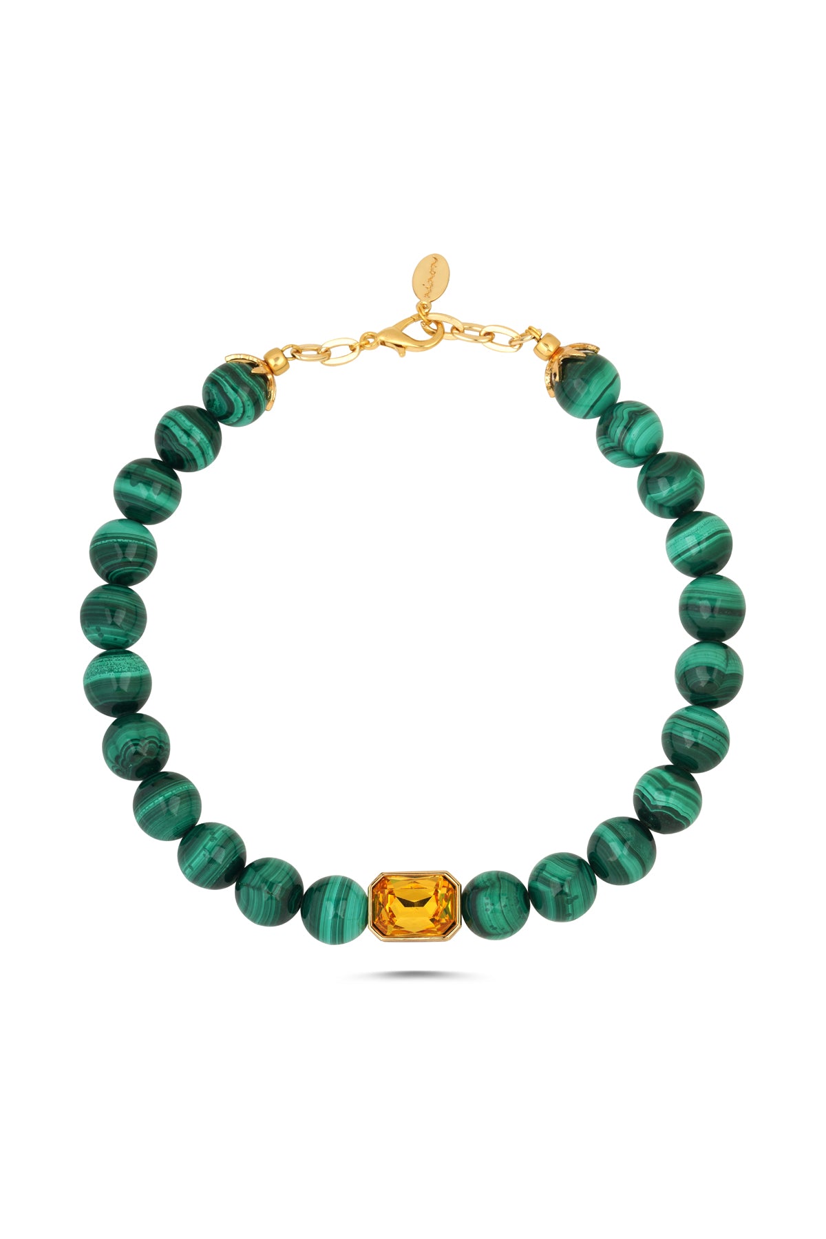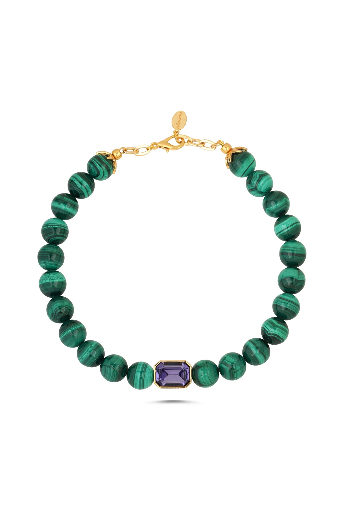 Ninon Bodrum Malahit Çift Taraflı Sarı ve Mor Swarovski Kristalli Kolye