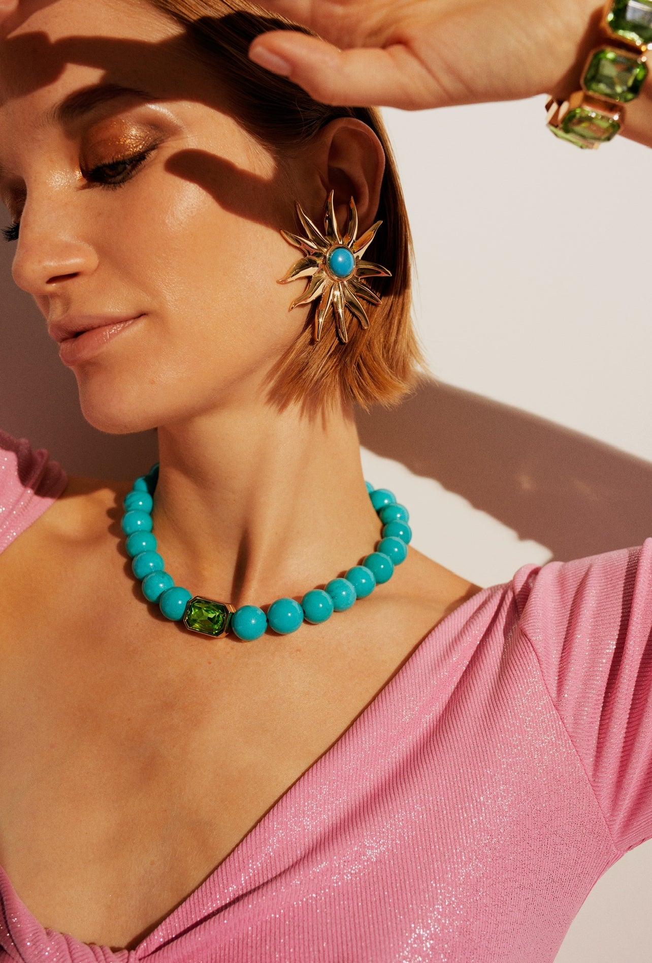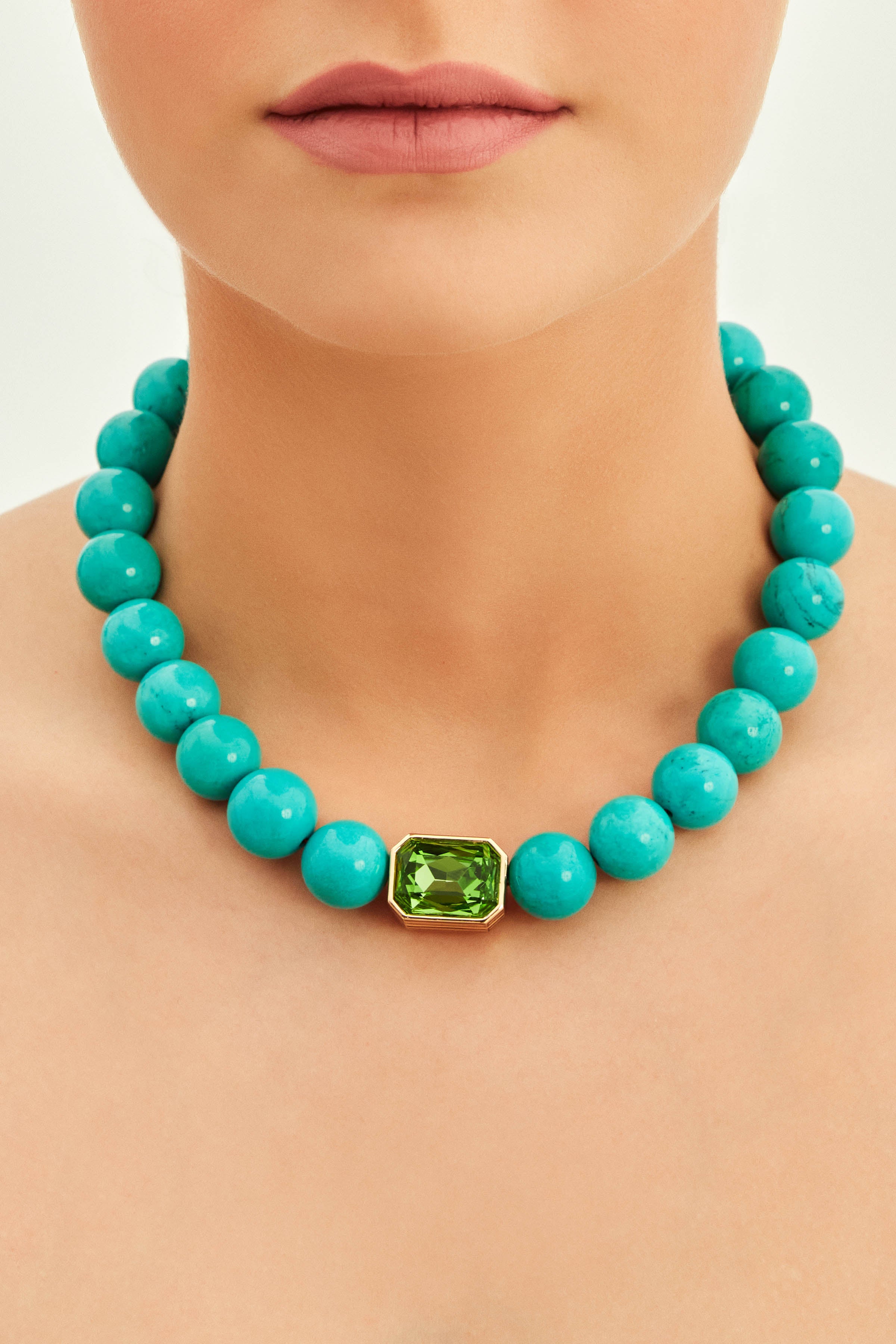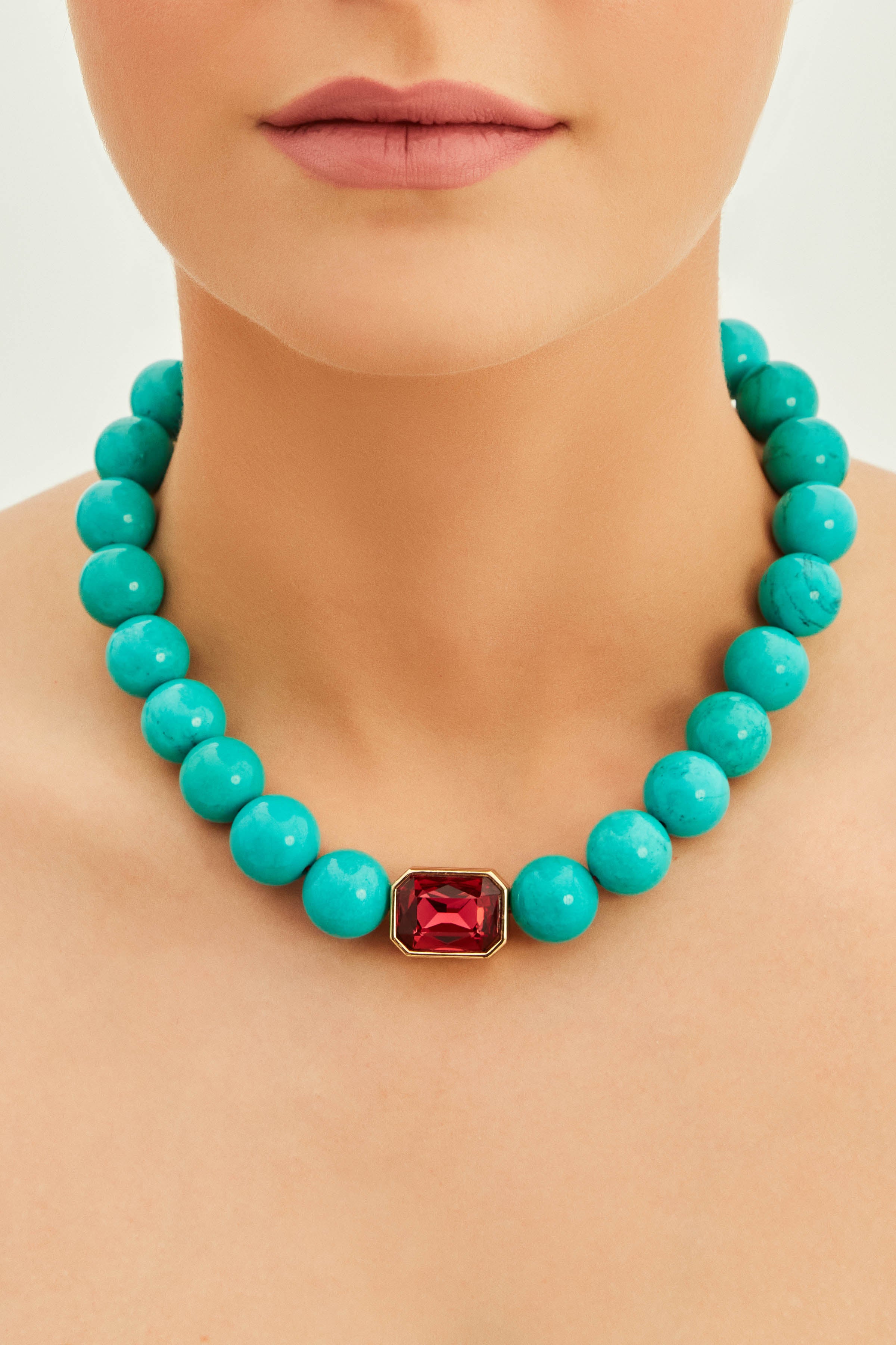 Ninon Bodrum Turkuaz Çift Taraflı Yeşil ve Fuşya Swarovski Kristalli Kolye