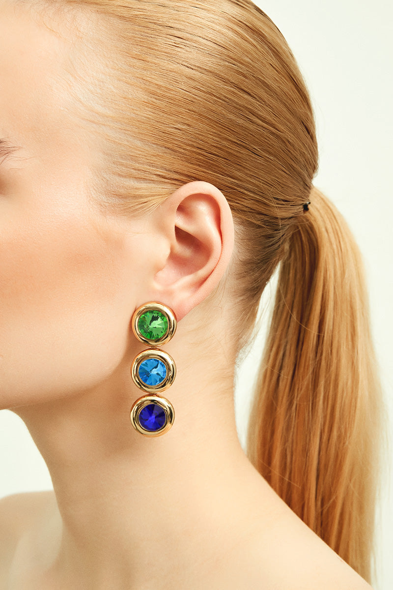 Ninon Dome Jardin Mavi Yeşil Kristal Küpe