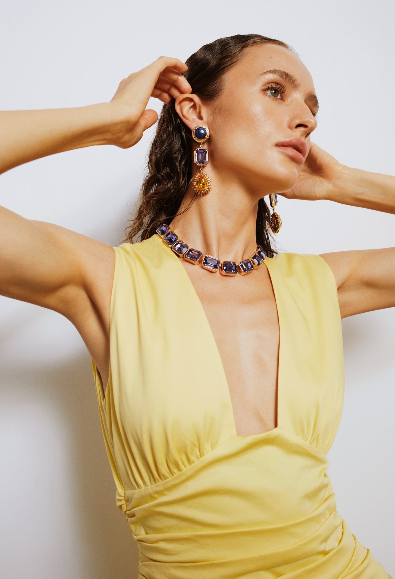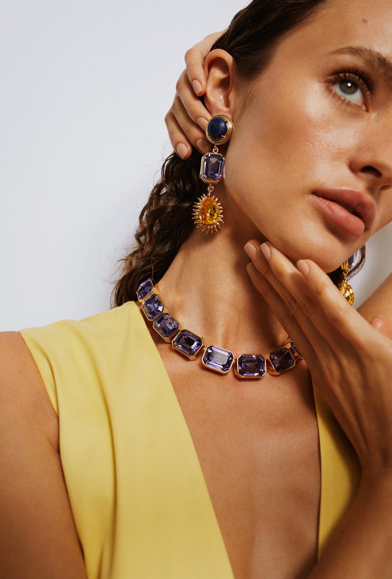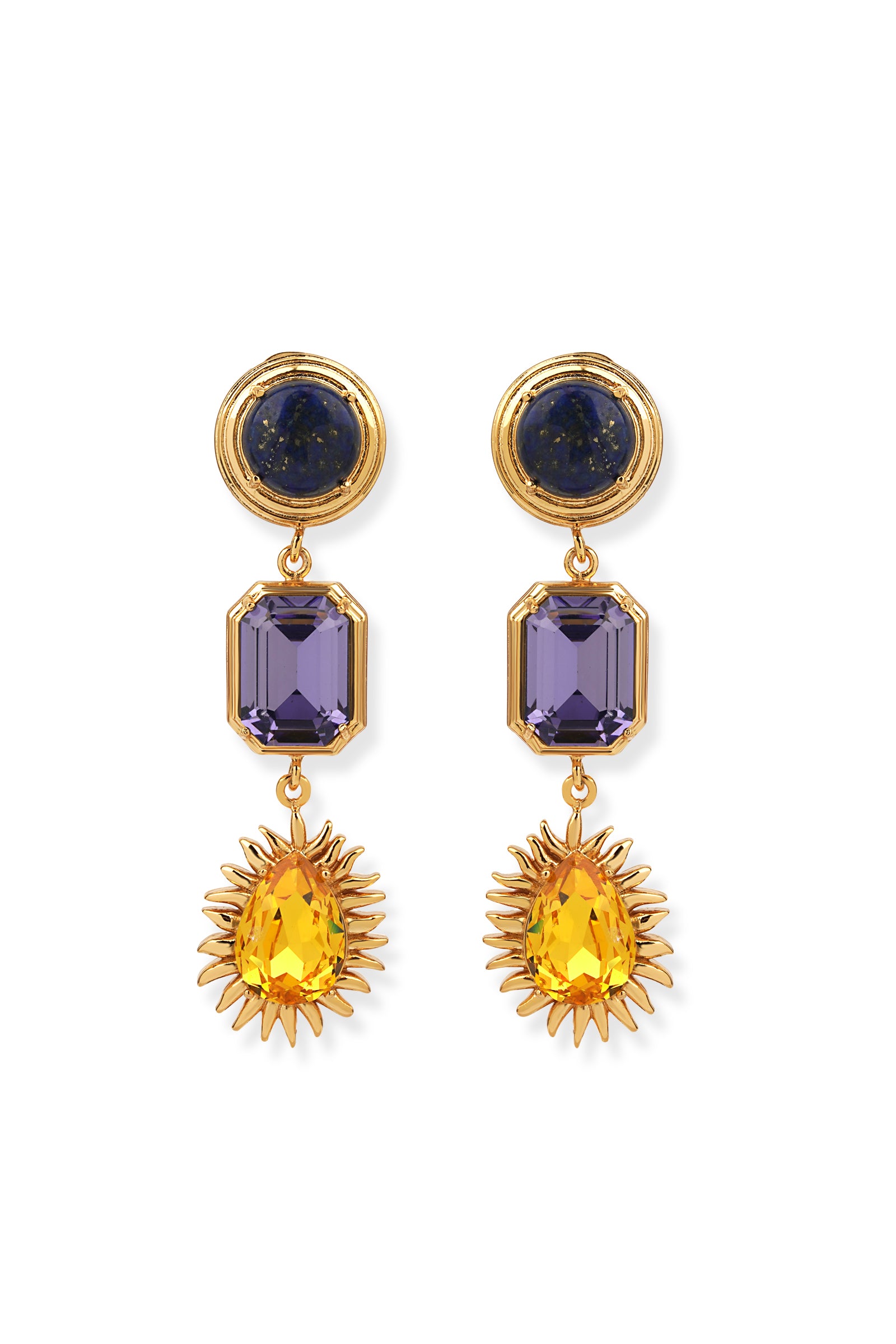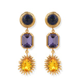 Ninon Halicarnassus Lapis Mor & Sarı Kristal Küpe