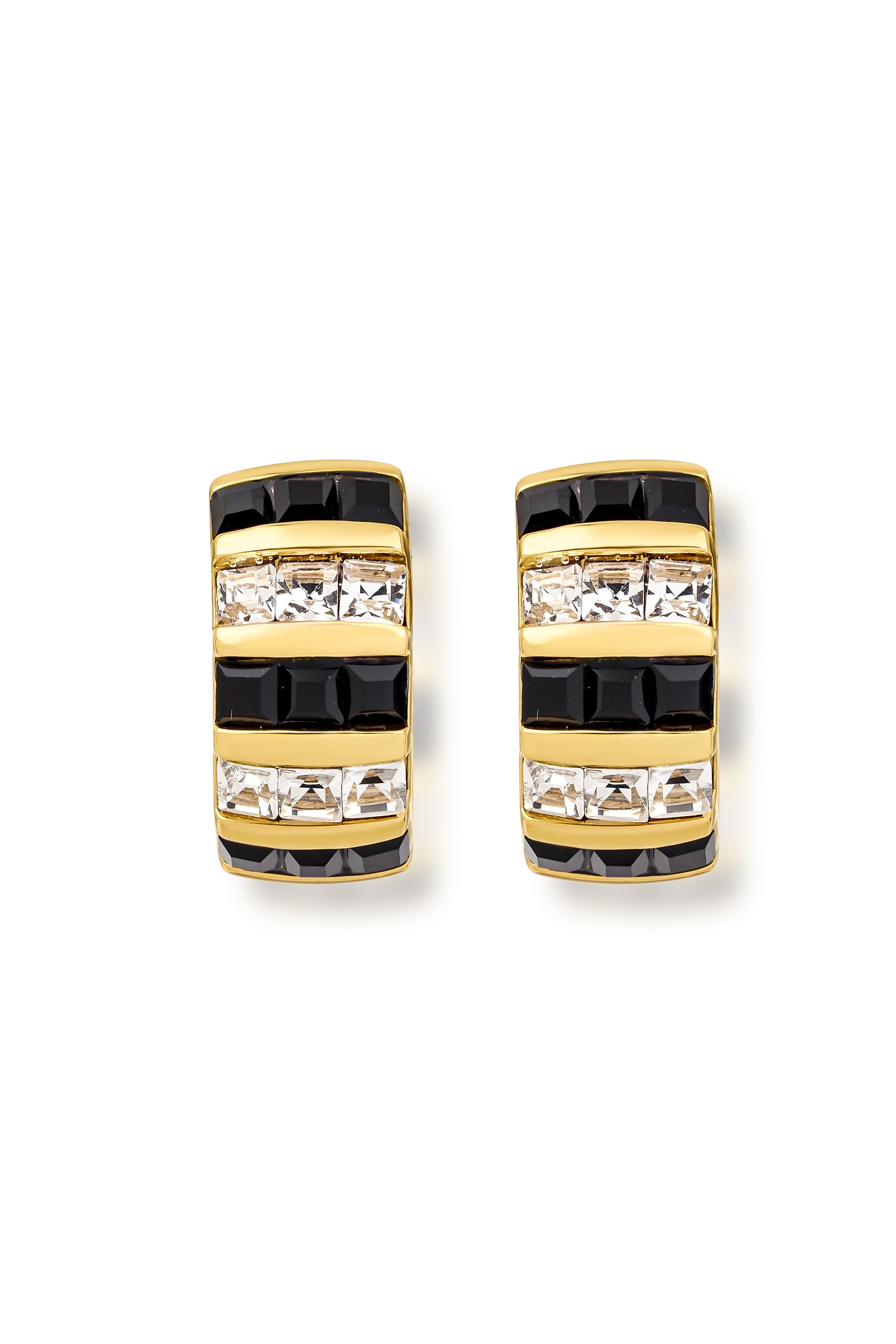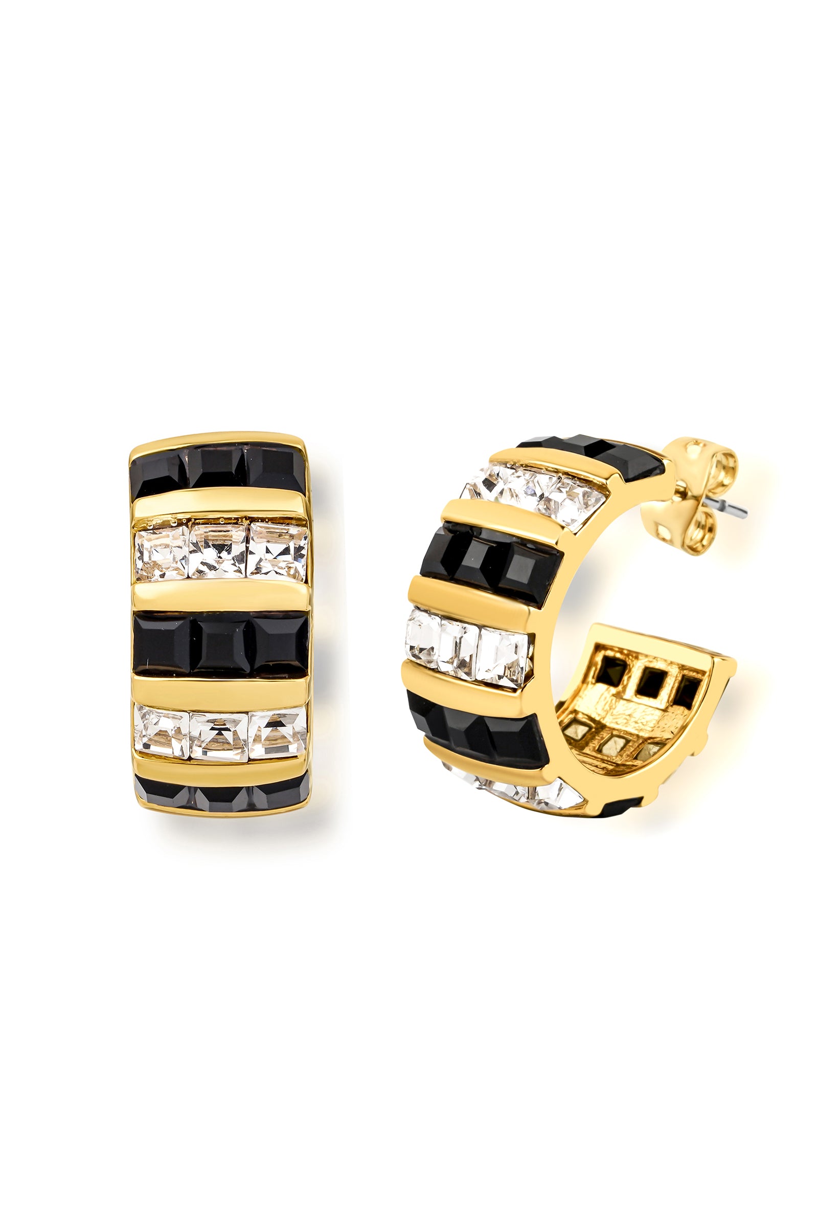 Ninon Margarita on the Rocks Siyah Beyaz Kristal Altın Kaplama Small Halka Küpe