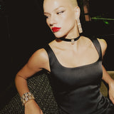 Ninon Margarita on the Rocks Siyah Beyaz Kristal Altın Kaplama Siyah İpek Kadife Choker