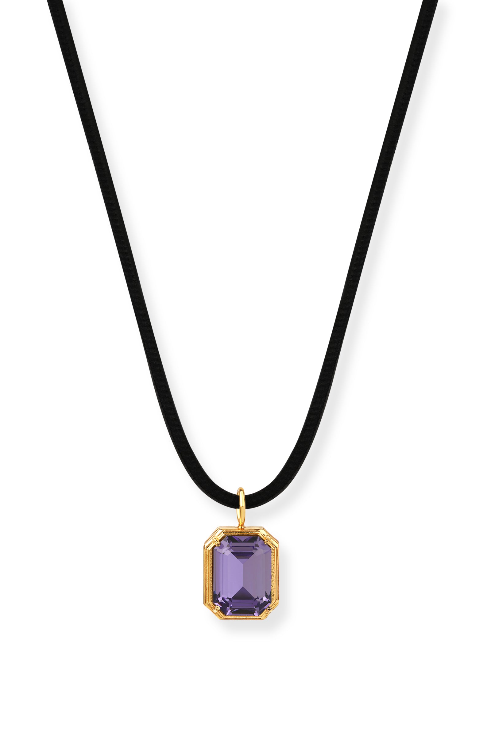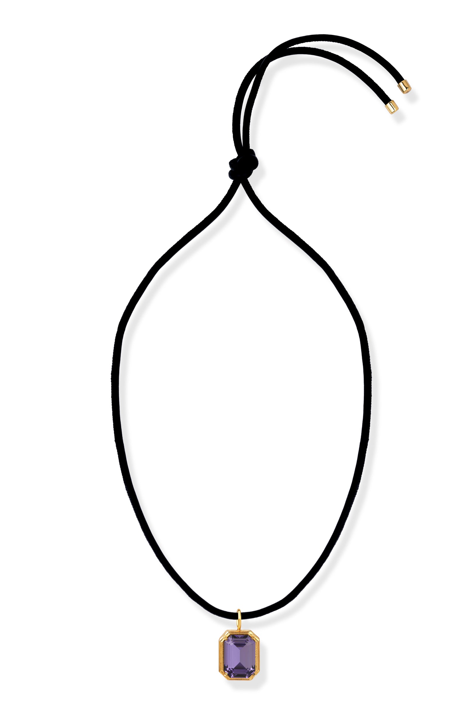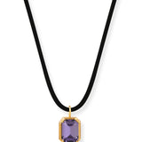 Ninon Halicarnassus Mor Kristal Charm Siyah Deri Kolye