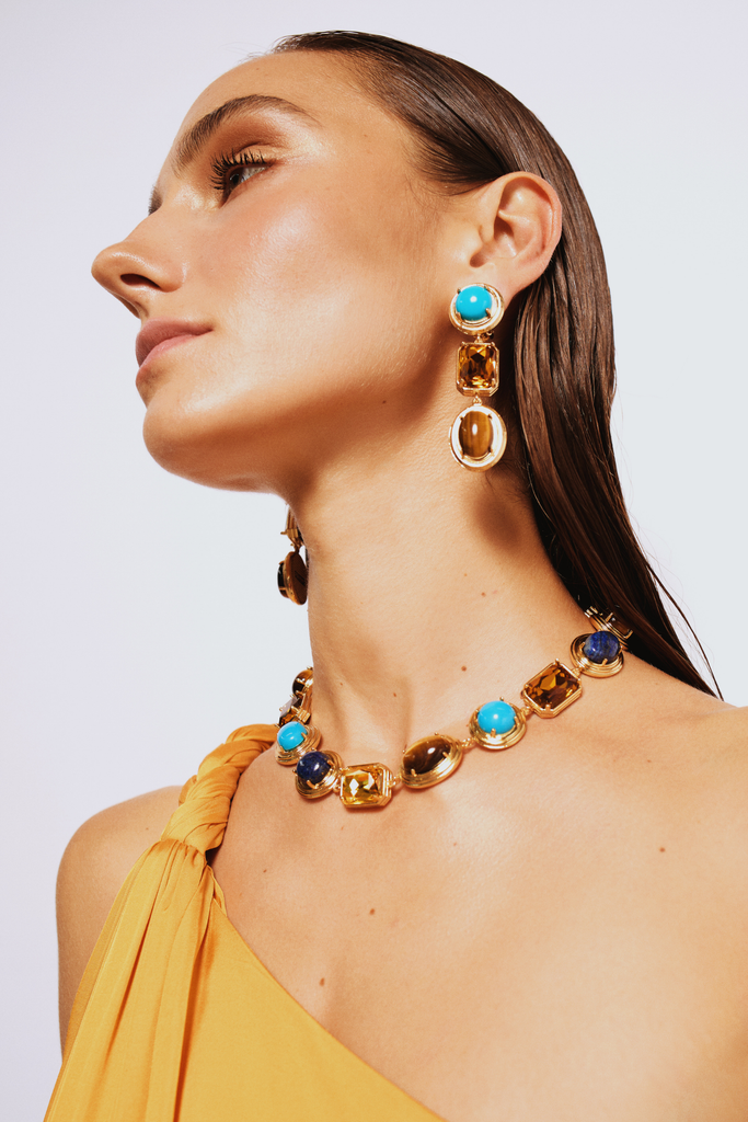 Ninon Myndos Turkuaz Turuncu Kristal Kaplangözü Küpe