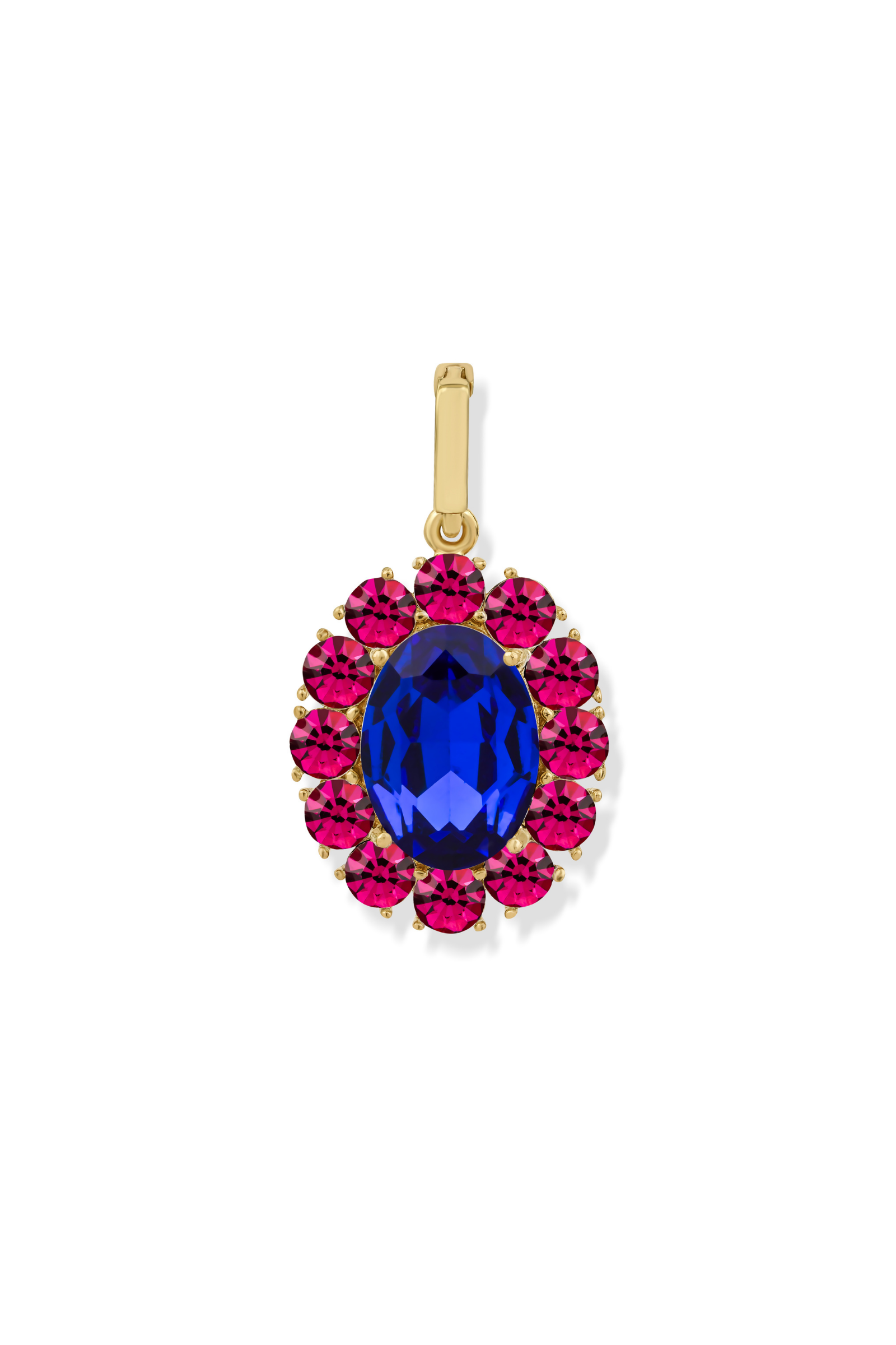 Petite Ninon Oval Fuşya Lacivert Kristal Altın Kaplama Charm