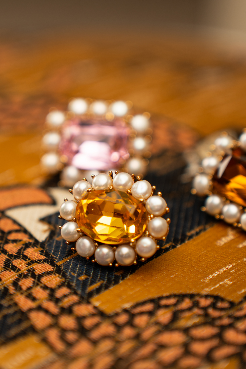 Petite Ninon Pompadour Oval İncili Sarı Kristal Altın Kaplama Küpe
