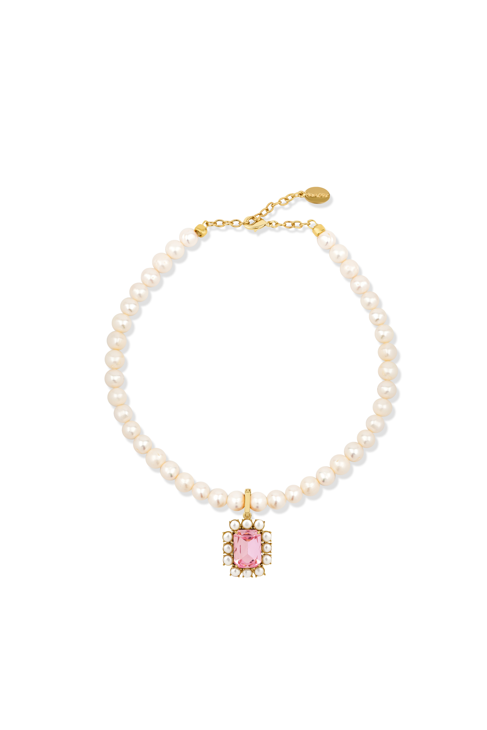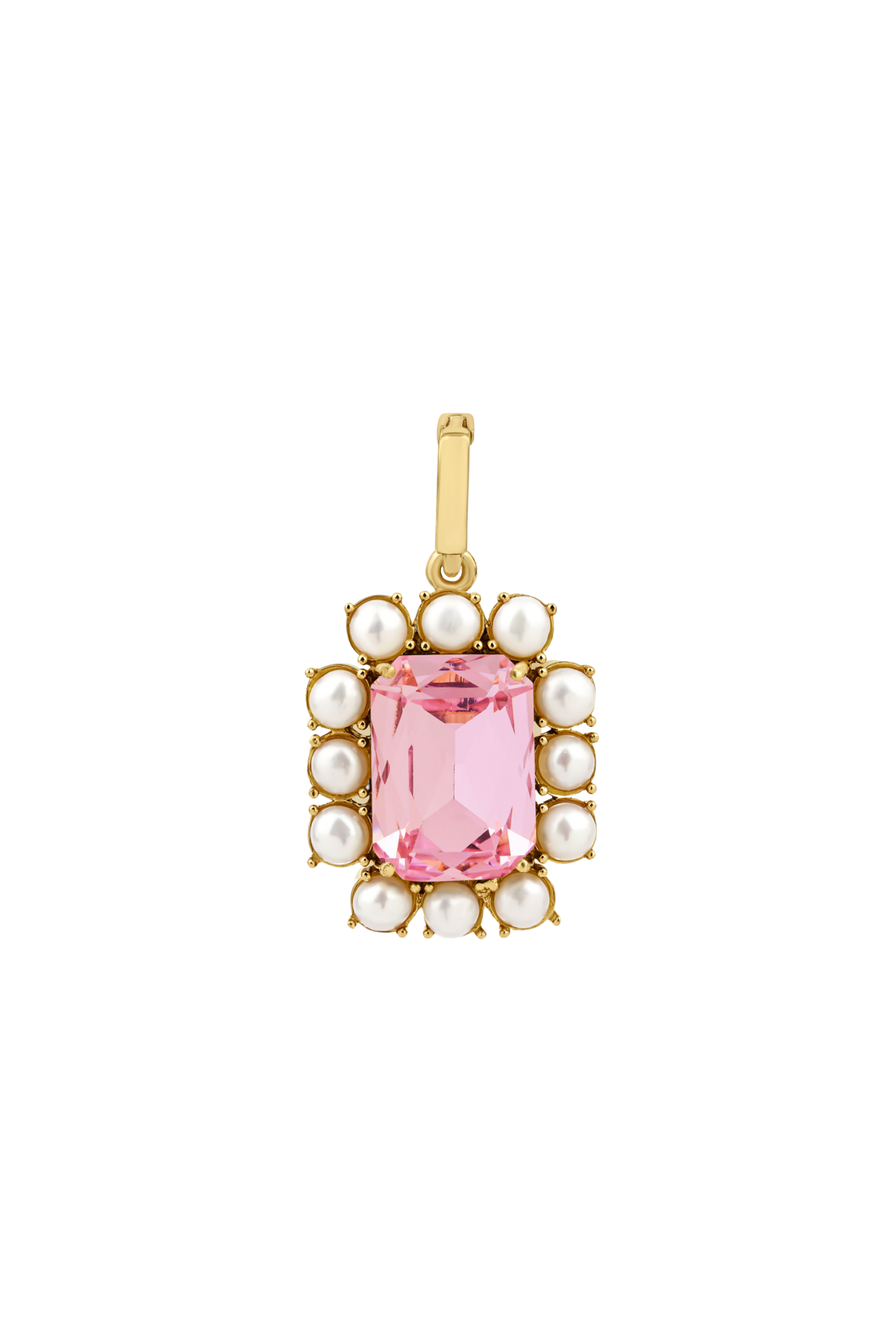 Petite Ninon Pompadour Square İncili Pembe Kristal Altın Kaplama Charm