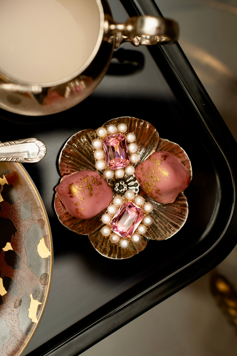Barok romantizminin zamansız ışıltısından ilham alan Petite Ninon Pompadour Küpeler, klasik zarafeti çağdaş bir dokunuşla yeniden tanımlıyor. Her biri özenle seçilerek elde yerleştirilmiş inci ve şeffaf kristaller, altın kaplamalı zarif bir montür ile çevrelenerek kusursuz bir ışıltı yaratıyor.