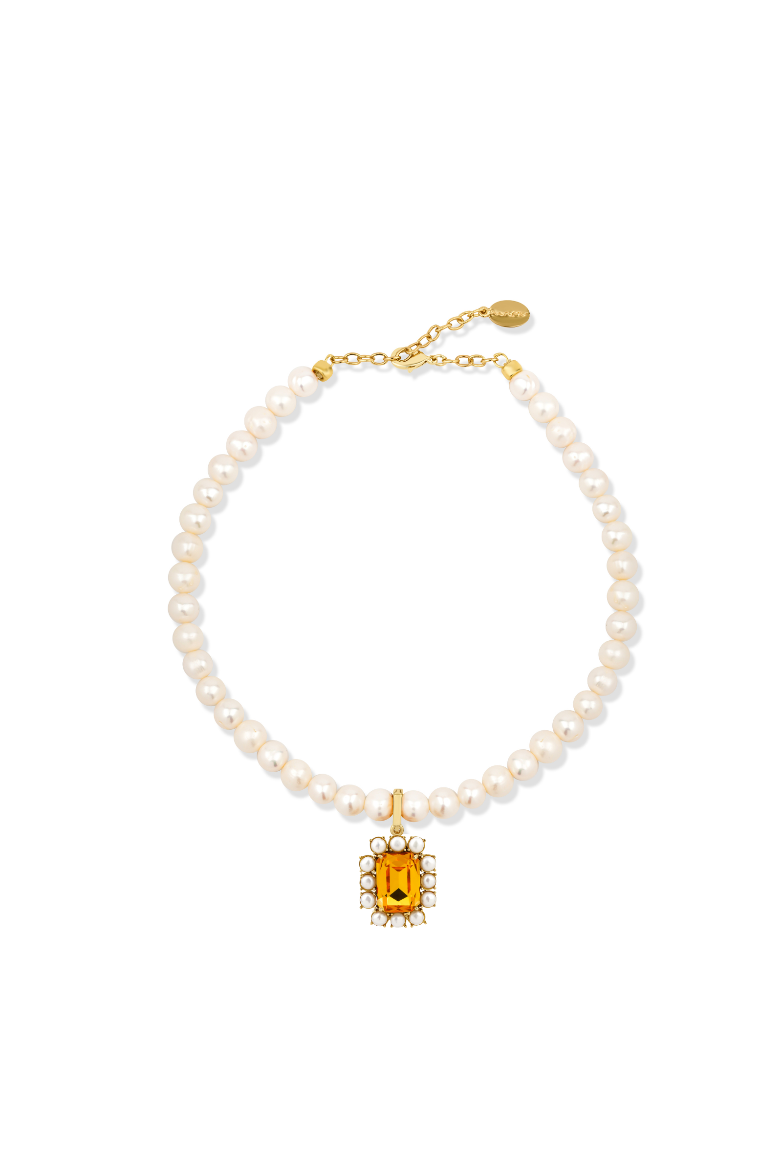 Petite Ninon Pompadour Square İncili Sarı Kristal Altın Kaplama Charm
